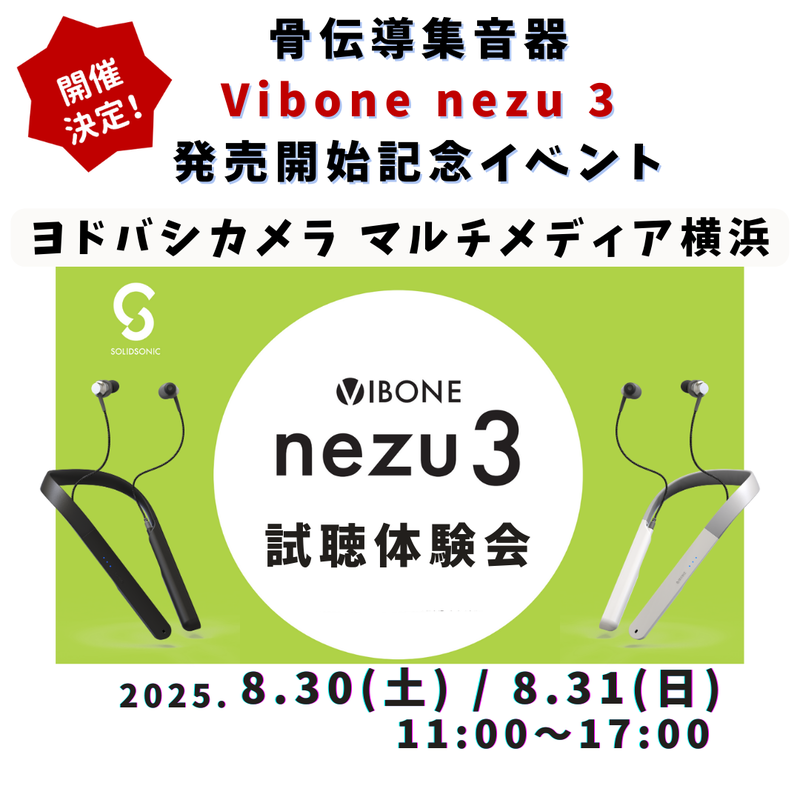 ヨドバシカメラ各店舗での発売開始を記念して骨伝導集音器「Vibone nezu 3」試聴体験イベントを開催します!